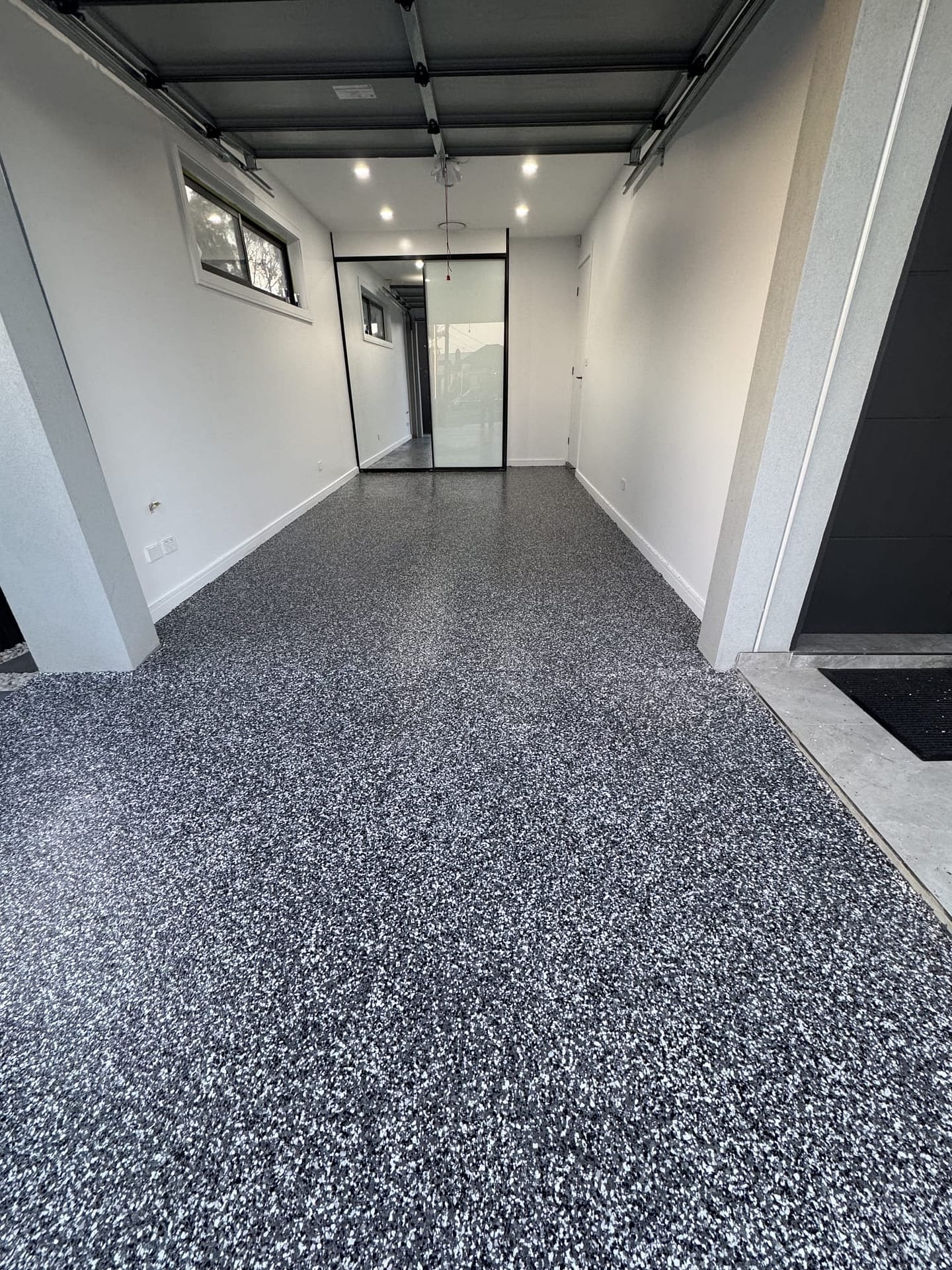 Finish selection also matters. Some homeowners want a plain solid colour for a clean, functional look. Others prefer decorative flake finishes that help hide dirt and add texture. In wetter areas, slip resistance should be discussed early so the floor is matched to how the space is actually used.